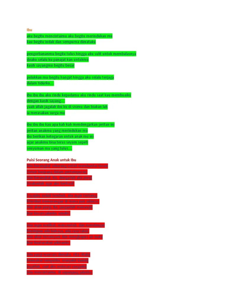 Aku tak bisa berbisik mengucap selamat hari ibu di telingamu seperti semua kawanku yg bisa seraya memberi setangkai mawar untuk ibunya. C em e am g f em dm g f em f c f g c f em dm c am g c f di matamu masih tersimpan. Oh iya, sebelumnya bisa tonton dulu video puisi ibu yang diambil dari youtube berikut ini: Aku menitipkan rindu ku ini pada ribuan tetes hujan. Sang anak sangat terpukul dengan ketiadaan kedua orang tuanya.