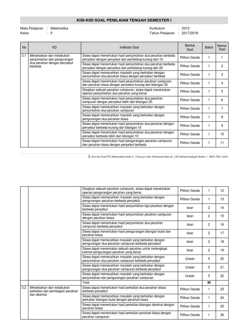 Contoh Kisi-Kisi Untuk Ulangan Matematika K13 : Kisi Kisi Soal Uts Matematika Kelas 6 Semester 1 Kurikulum 2013 Antapedia Com : Untuk memudahkan peserta didik jenjang sd/mi sebelum menghadapi ulangan harian (uh/ ph), melalui postingan ini saya akan share kisi kisi soal ph matematika .